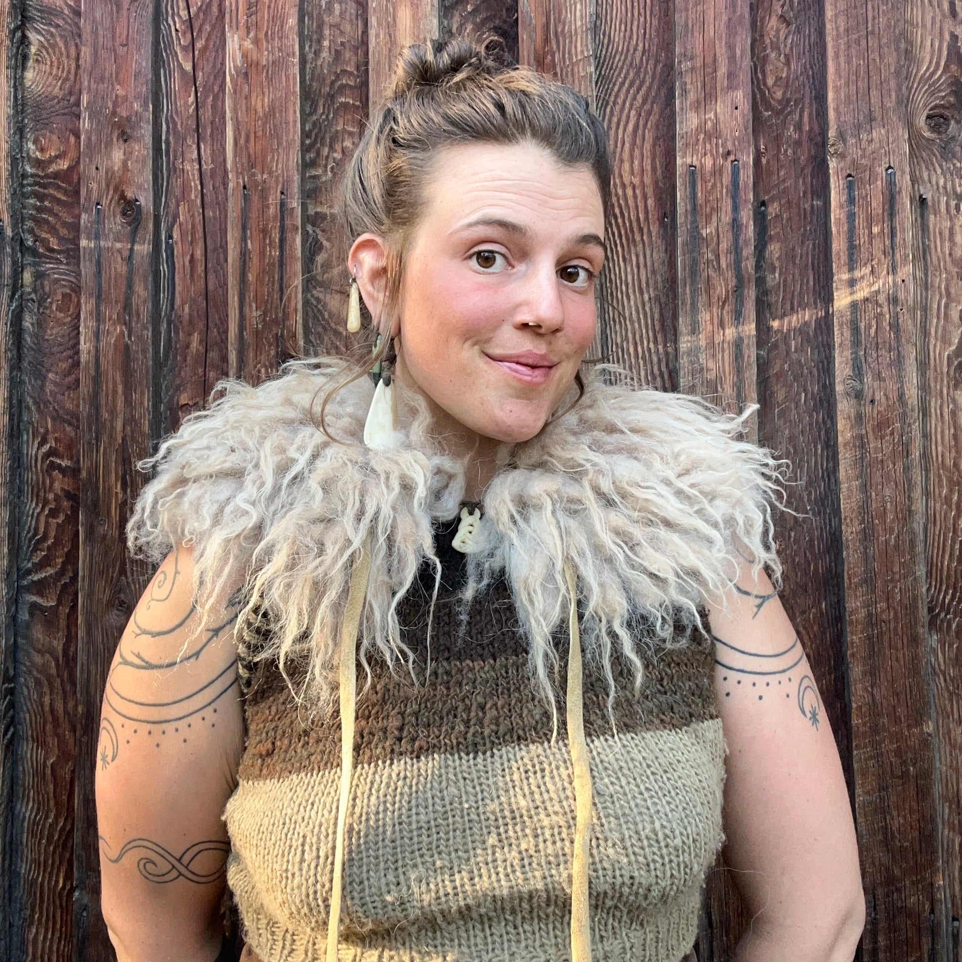 shaped to honor the hides wishings. completely hand tended. Tied together with hand-tanned buckskin.